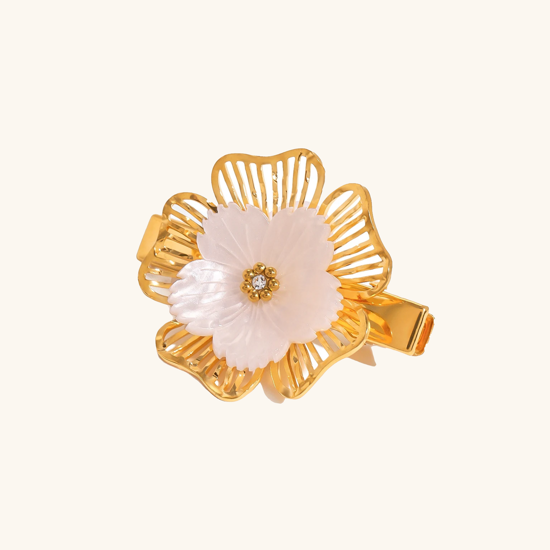 Embrace floral elegance with AVARIA’s Petal Pearl Hair Clip. This gorgeous hair ornament combines a...