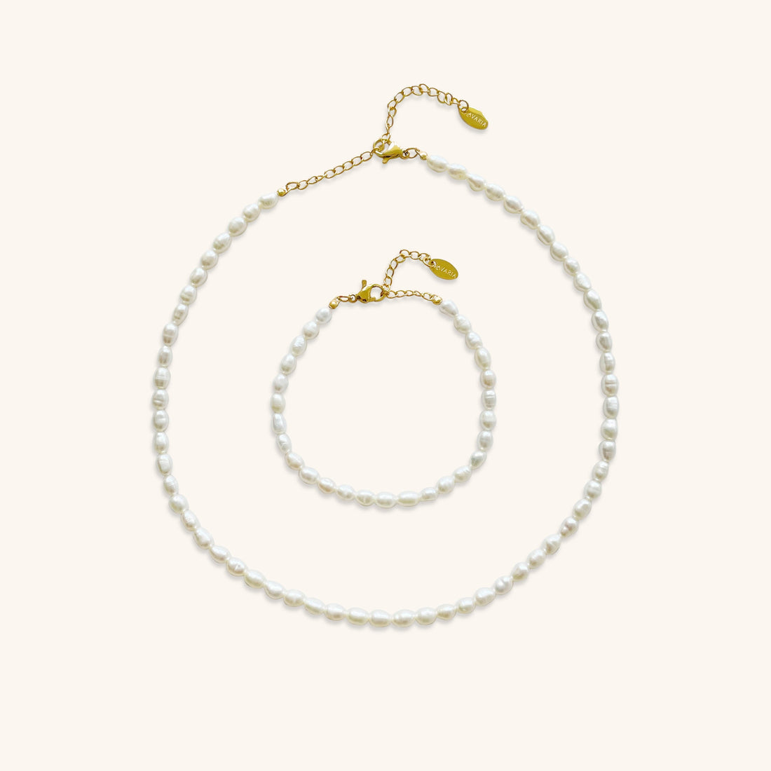 The Freshwater Pearl Bundle is a timeless combination of a choker and a bracelet, each...