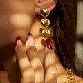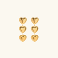 Carry a little love with you wherever you go. The Aimee Gold Earrings, crafted from waterproof 18k gold, feature three hearts hanging beautifully in a row. Wear them daily and feel the warmth of it's heartfelt design. Plus, they’re hypoallergenic for worry-free wear!