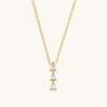 Discover the Alana, a stunning piece crafted from waterproof 18K Gold. This necklace features a pendant adorned with three graceful, teardrop-shaped Diamond Simulants, offering an enduring touch of sophistication and charm.