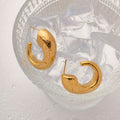 These earrings take you seamlessly from work to happy hour without looking out of place! These chunky 18k waterproof gold hoop studs add effortless polish to any look. Hypoallergenic for all-day comfort.