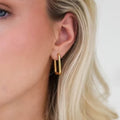 AVARIA’s Ambrielle offers a sleek, modern twist on classic hoops with its U-shaped rectangular design. Crafted with both simplicity and versatility in mind, these earrings bring a minimalist edge to any look. Hypoallergenic and waterproof as always for worry-free wear.