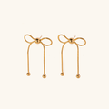 Sleek and sophisticated, these ribbon drop earrings crafted from 18k waterproof gold add a touch of timeless elegance to any ensemble. Their lightweight design and hypoallergenic materials ensure a comfortable, luxurious feel all day long.