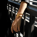 AVARIA's Annika offers a touch of coastal charm. This eye-catching piece features a beautifully detailed starfish design, perfect for adding an ocean-inspired touch to any ensemble. The open cuff design provides a comfortable and adjustable fit, while the polished finish ensures a sophisticated look. As with all AVARIA pieces, it's crafted to be waterproof and hypoallergenic.