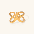 Feel the allure of the sea with AVARIA’s Aurelie, an open-ended Gold ring that takes the form of a delicate starfish. Whether you're an outdoorsy beach casual or someone who's simply into unique pieces, this ring easily brings the serenity of the ocean to your wardrobe. Hypoallergenic and waterproof for worry-free beauty.