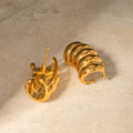 Textured refinement. Gleaming 18k PVD Gold sculpts a sophisticated illusion of clustered huggies. Its waterproof and hypoallergenic design ensures enduring elegance.
