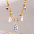 AVARIA's Cerulean necklace offers a unique twist on pearl jewelry. This gold chain necklace features lustrous freshwater pearls and charming blue-toned accents, creating a sophisticated and eye-catching piece. As per AVARIA's standards, each piece is waterproof and hypoallergenic for worry-free wear.
