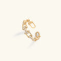 Chloe is a sparkling and elegant ring embellished with dazzling diamond simulants. It flaunts a Gold band with an open-ended design that will elevate your look with its splendid charm.