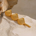 Capture the charm of the tide with AVARIA’s Coastal Seashells Gold French Pin. This hair accessory features a charming row of golden seashells, each reflecting the light like the sun on the sea. Hypoallergenic and waterproof, it’s crafted for those who appreciate the allure of the ocean.