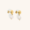 Alexa. A stunning earring that features freshwater pearl drops in their purest form dangling from a delicate gold piece embedded with diamond simulants. A versatile piece that will add some wonder and excitement to your style.