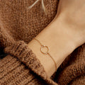 Dalia. A sleek yet refined bracelet that features a gold chain with hoops that radiates a delicate sparkle. An adaptable accessory that easily enhances attire combination of your choice.