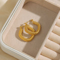 A sleek and stylish signature fulfilled with Emani Hoops. A unique hoop that exhibits a square-like "hoop" textured with a twisted design made to effortlessly add a touch of luxury to any ensemble. Be the darling of the night with this head turning wardrobe staple.