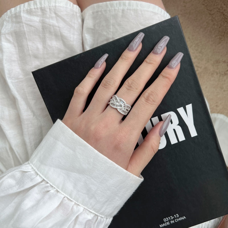 Indulge in luxury and style with this exquisite ring. Its unique wavy band design gives off a sense of mystery, while the stones illuminate with divinity. A truly exclusive piece, perfect for any special occasion.