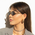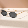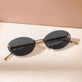 Ovale, elegante Sonnenbrille mit goldenen Akzenten und dezenten Steinen auf den Gläsern, exquisit verarbeitet.