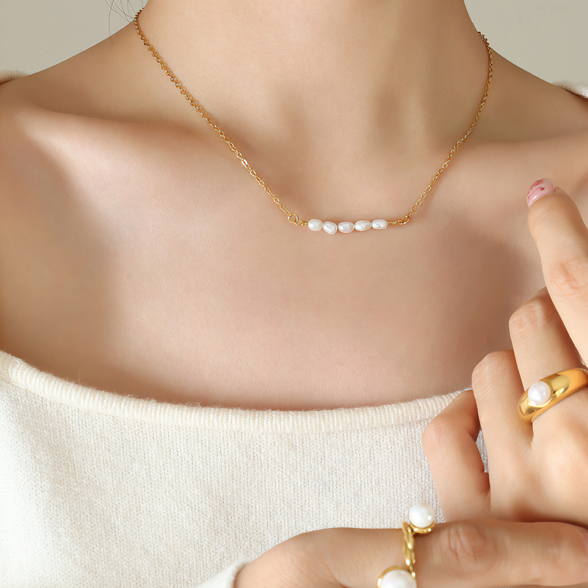 Glam up your look with the stunning Fleur freshwater pearl gold necklace! Its lustrous pearls will surely add a touch of sophistication and elegance to any ensemble for any event.
