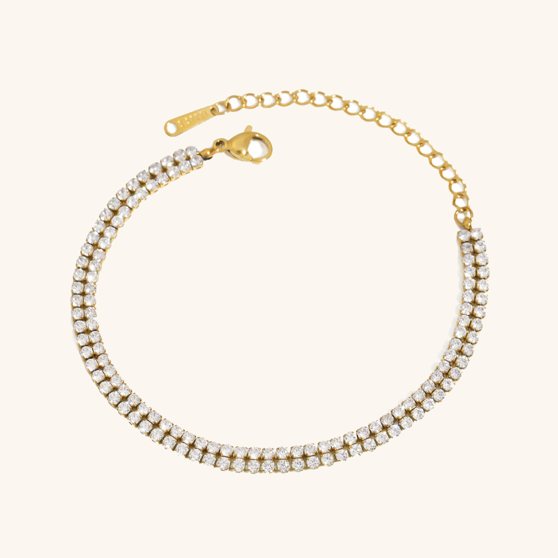 Stack it or star it solo — the Florabelle is designed to catch eyes. With its sleek gold base and twin rows of crystals, it’s the kind of bracelet that brings instant polish to your look. Like all AVARIA pieces, it’s waterproof, hypoallergenic, and ready for everyday wear.