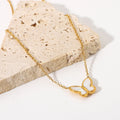 Add a touch of elegance with AVARIA's Flutterby Mother of Pearl Necklace. The butterfly-shaped pendant, adorned with freshwater pearls brings a rather graceful charm that easily uplifts any look. Hypoallergenic and waterproof for worry-free wear.