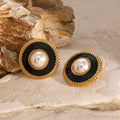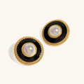 Haven is where vintage meets modern. AVARIA's Haven flaunts a textured gold border paired with a glossy black enamel along with a cradle that seats a radiant freshwater pearl. A bold and undoubtably, elegant piece of wearable. Waterproof and hypoallergenic for worry-free wear.
