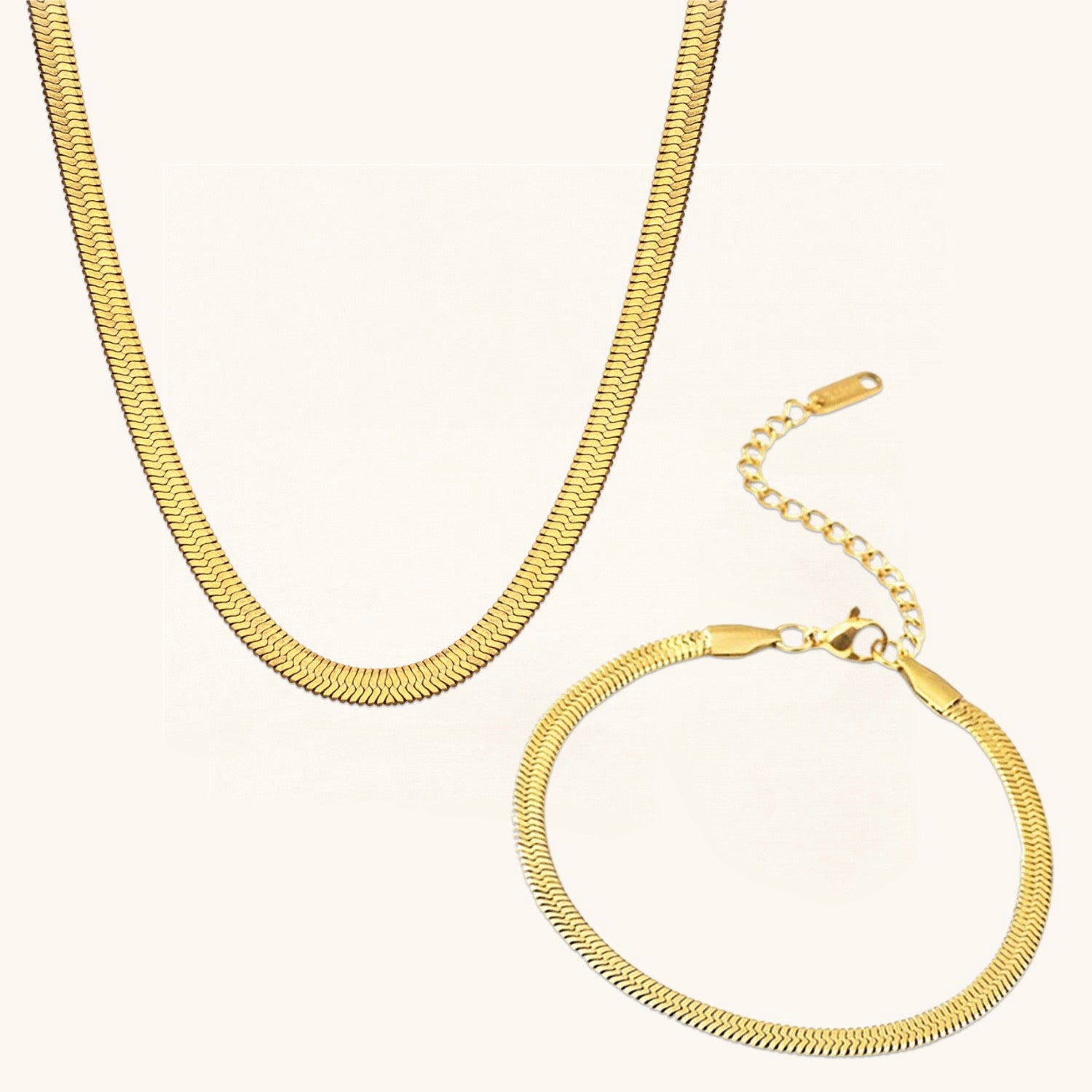 - You will receive An Elysian Gold Herringbone Necklace and an Ellaine Gold Herringbone Bracelet.