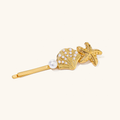 Bring beachy vibes to your everyday look with AVARIA’s Ios Pearl French Pin. An ensemble which consists of a starfish, a pearl-adorned shell, and a shiny freshwater pearl piece. A hair accessory so ocean-inspired, having them on is pretty much like a day at the beach. It’s hypoallergenic and waterproof, so you’re set for any weather.