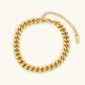 Jean. A sleek yet refined bracelet that features a gold chain with a delicate sparkle. This adaptable accessory will enhance any look and any event.