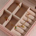- High-Quality Stainless Steel-Plated 18k Gold and Gemstones.