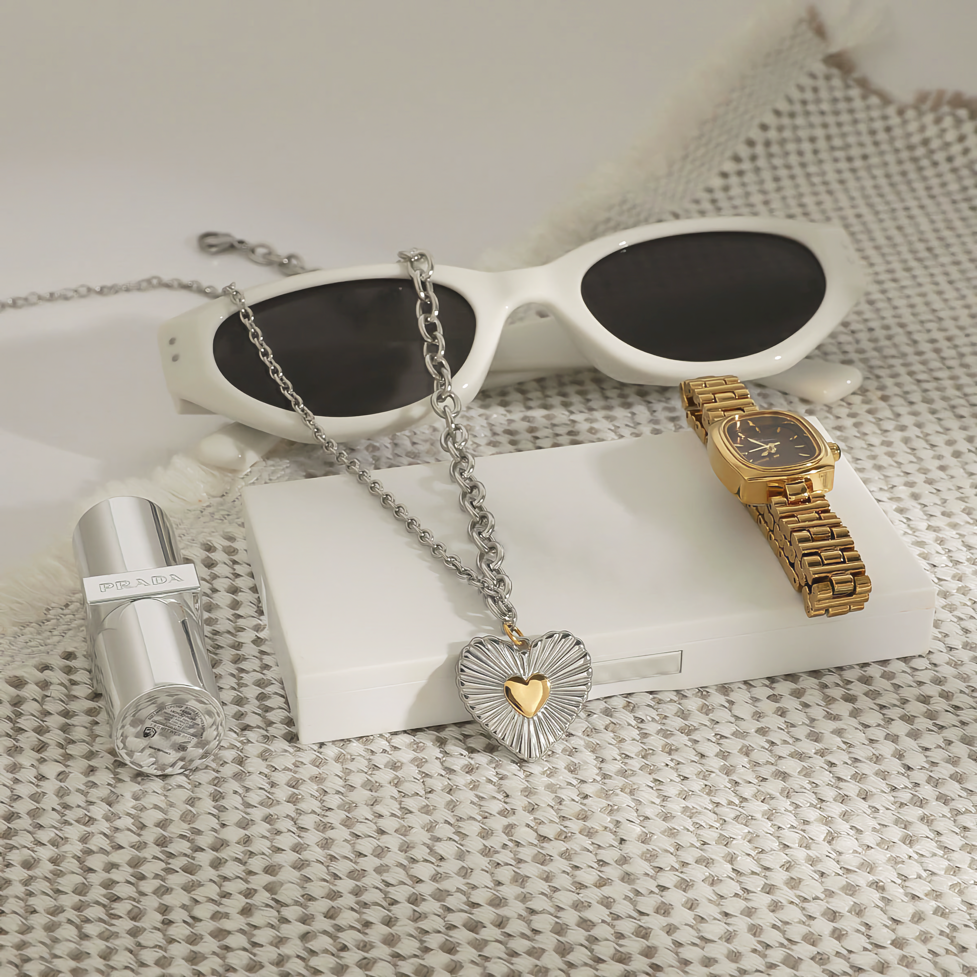 AVARIA's Judith is a study in contrasts, a delicate silver chain leading to a heart where silver meets gold. This pendant brings a touch of modern romance, blending bold elements with simple elegance for that effortlessly cool, yet versatile look. And, of course, like all AVARIA pieces, it's crafted to be waterproof and hypoallergenic, ensuring you can wear it without worry.
