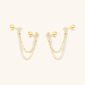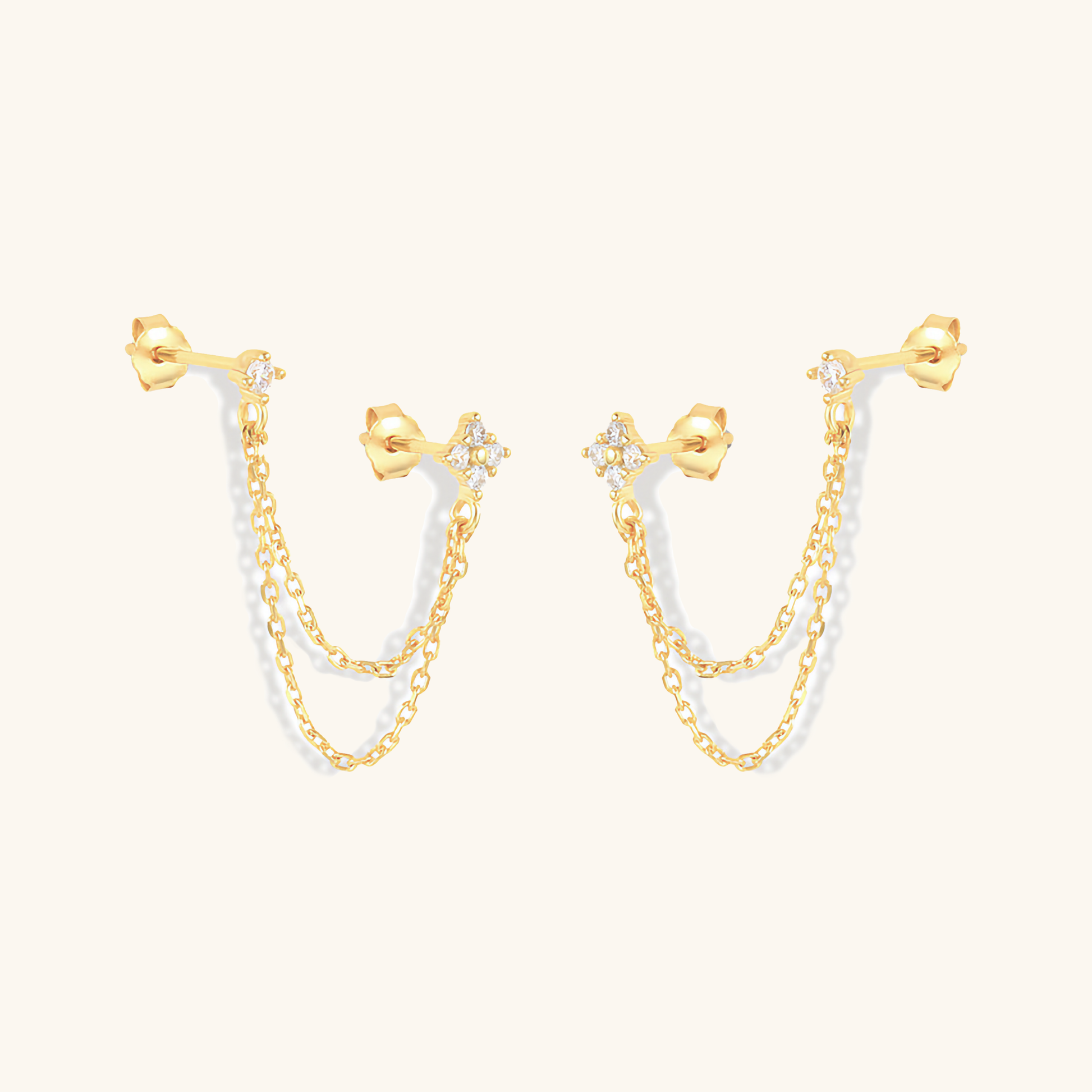 AVARIA’s Daniella redefines the classic stud earring with a layer of looping chains accented by visually captivating diamonds. Timeless elegance with a contemporary twist. Hypoallergenic and waterproof for ease and comfort all day long.
