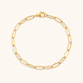 This gold bracelet blends a classic style with a modern touch. The bracelet features a wide connected link of chains that creates a sleek and elegant look on your wrist. Best paired with the Lena Golden Chain Necklace.