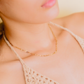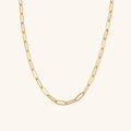 This gold necklace combines a timeless style with a contemporary flair. The necklace features chain-connected links that form a smooth and graceful curve around your neck. Best paired with Lena Golden Chain Bracelet.