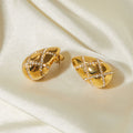 Transform your style with captivating sparkle. The Linnea Gold Earrings feature 18k gold teardrop silhouettes, their gleaming surfaces adorned by crisscrossing rows of captivating diamond simulants. Designed to elevate your looks from day to night.
