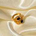 The Liza Gold Ring is a striking blend of bold geometry and eye-catching layers accented with onyx. Crafted from waterproof and hypoallergenic 18k gold, this piece promises lasting beauty and safe wear.
