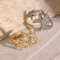 AVARIA’s Marina brings the beauty of the ocean to your fingertips. This open-ring design features two delicate starfish, one larger than the other, creating a stunning ocean-inspired harmony. Crafted from waterproof gold and hypoallergenic, this ring is as durable as it is stylish.
