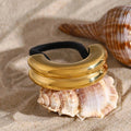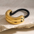 The Glossy Double Arch Pony Cuff silhouette makes a bold statement without being over the top. It's the perfect accessory for the modern woman who appreciates clean lines and understated elegance. Hypoallergenic and waterproof for worry-free wear as always.