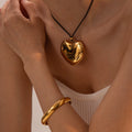 AVARIA’s Ophelia combines a chunky gold heart pendant with a sleek black rope, creating a striking contrast that’s both bold and elegant. Perfect for making a statement, this necklace is hypoallergenic and waterproof, ensuring comfort and style wherever you go.