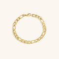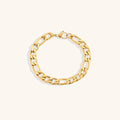 Saturn. A sleek yet refined bracelet made of delicate gold chain links that exudes a subtle yet captivating sparkle. This adaptable accessory will enhance any look and any event.